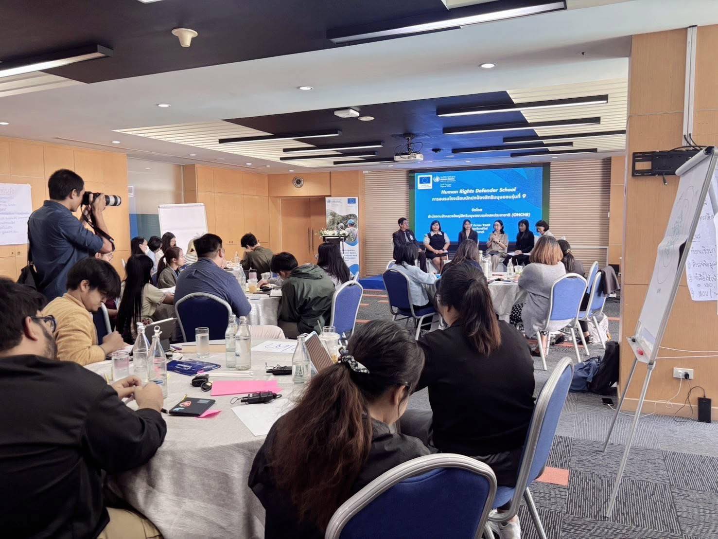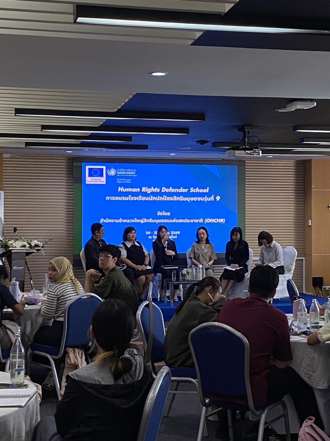 เมื่อวันที่ 26 มีนาคม 2569 นายวรพล ชินเพชร ผู้อำนวยการสำนักงานกองทุนยุติธรรม ได้มอบหมายให้นางสาวพิสชา ไทยศรีสุข นักวิชาการยุติธรรมปฏิบัติการ เข้าร่วมเป็นวิทยากรในการอบรม “โรงเรียนนักปกป้องสิทธิมนุษยชน” ซึ่งจัดโดย สำนักงานข้าหลวงใหญ่เพื่อสิทธิมนุษยชนแห่งสหประชาชาติ (OHCHR) ประจำภูมิภาคเอเชียตะวันออกเฉียงใต้ ระหว่างวันที่ 24–27 มีนาคม 2569 ณ Riverine Place Hotel and Residence โดยการอบรมดังกล่าวมีวัตถุประสงค์เพื่อเสริมสร้างความรู้ ความเข้าใจ และศักยภาพของผู้ปฏิบัติงานด้านสิทธิมนุษยชน รวมถึงส่งเสริมความร่วมมือระหว่างหน่วยงานทั้งในระดับประเทศและระดับภูมิภาค ตลอดจนเปิดพื้นที่ให้ผู้เข้าร่วมได้แลกเปลี่ยนประสบการณ์และแนวทางการทำงาน